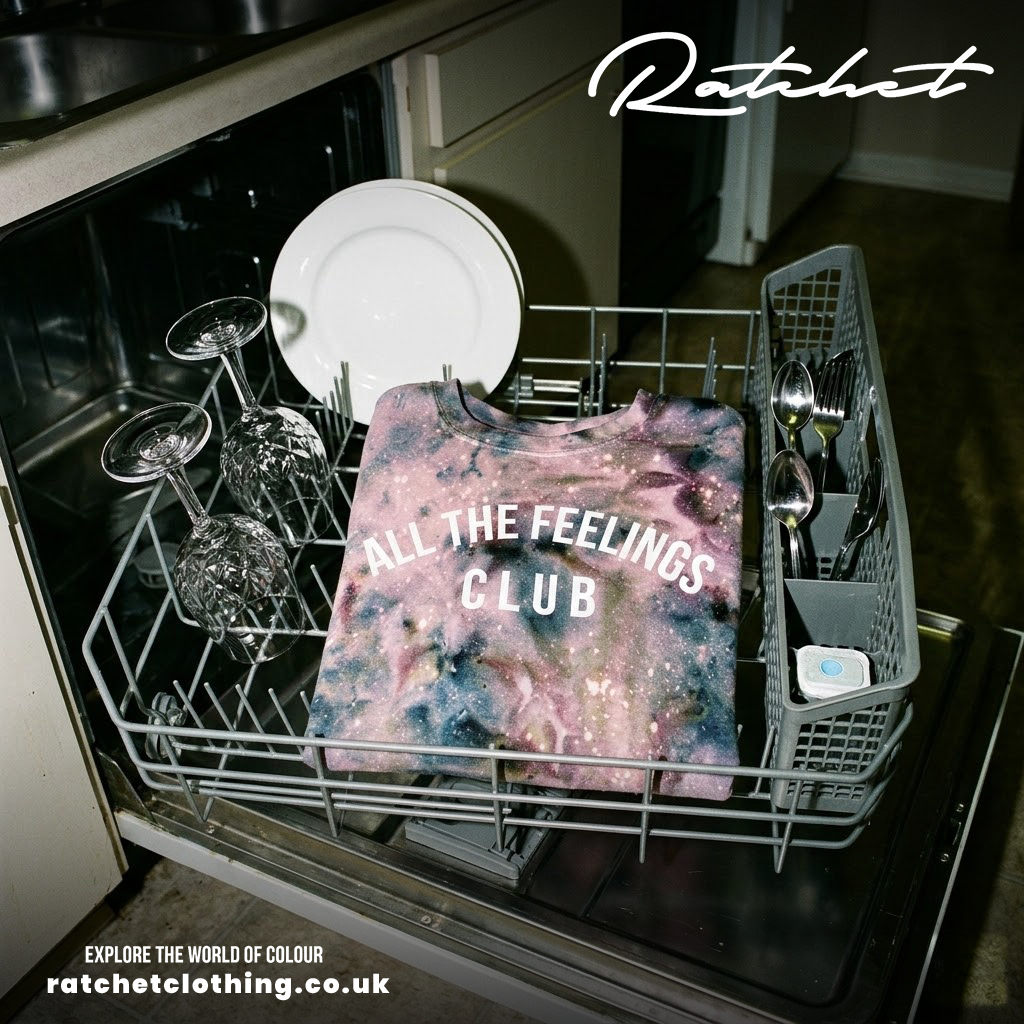 The concept was built around visual contradiction: premium-looking garment presentation inside chaotic, awkward or lowbrow domestic and urban environments. Dishwashers, sofas, benches, cars, washing lines and street furniture became part of the storytelling. Each scene was chosen to feel slightly wrong, slightly humorous and completely on-brand.